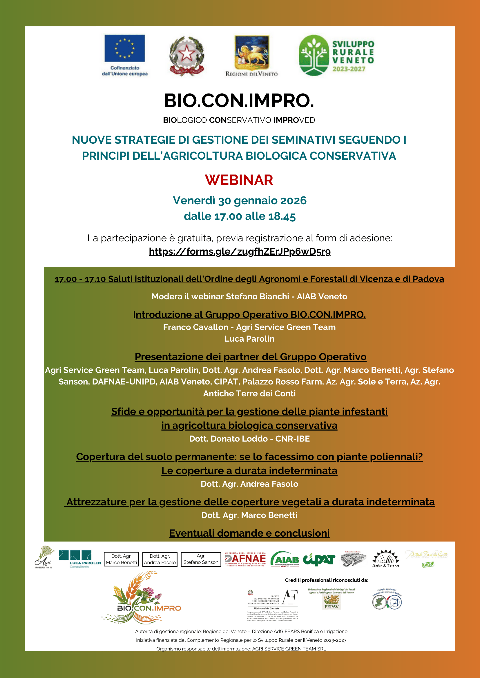 Locandina del webinar del Gruppo Operativo BIO.CON.IMPRO. svolto venerdì 30/01/2026